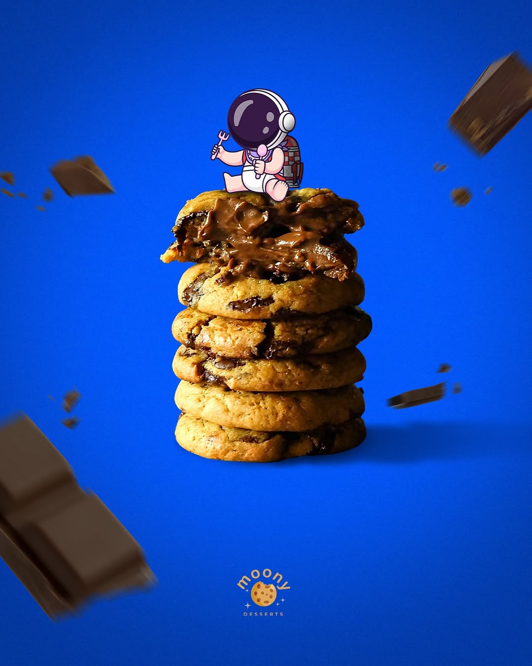 At 8 years old, Moony’s baker scribbled a recipe that would one day orbit into the stars. Today, that recipe lives on as the Cosmic Cookie—carrying the glow of Callebaut chocolate and the richness of pure butter. Each bite is a story of passion and a little stardust.✨